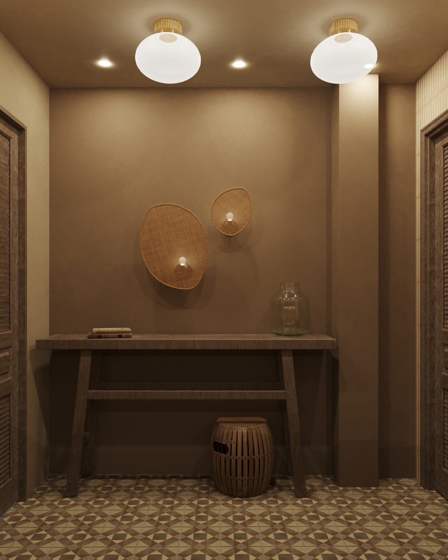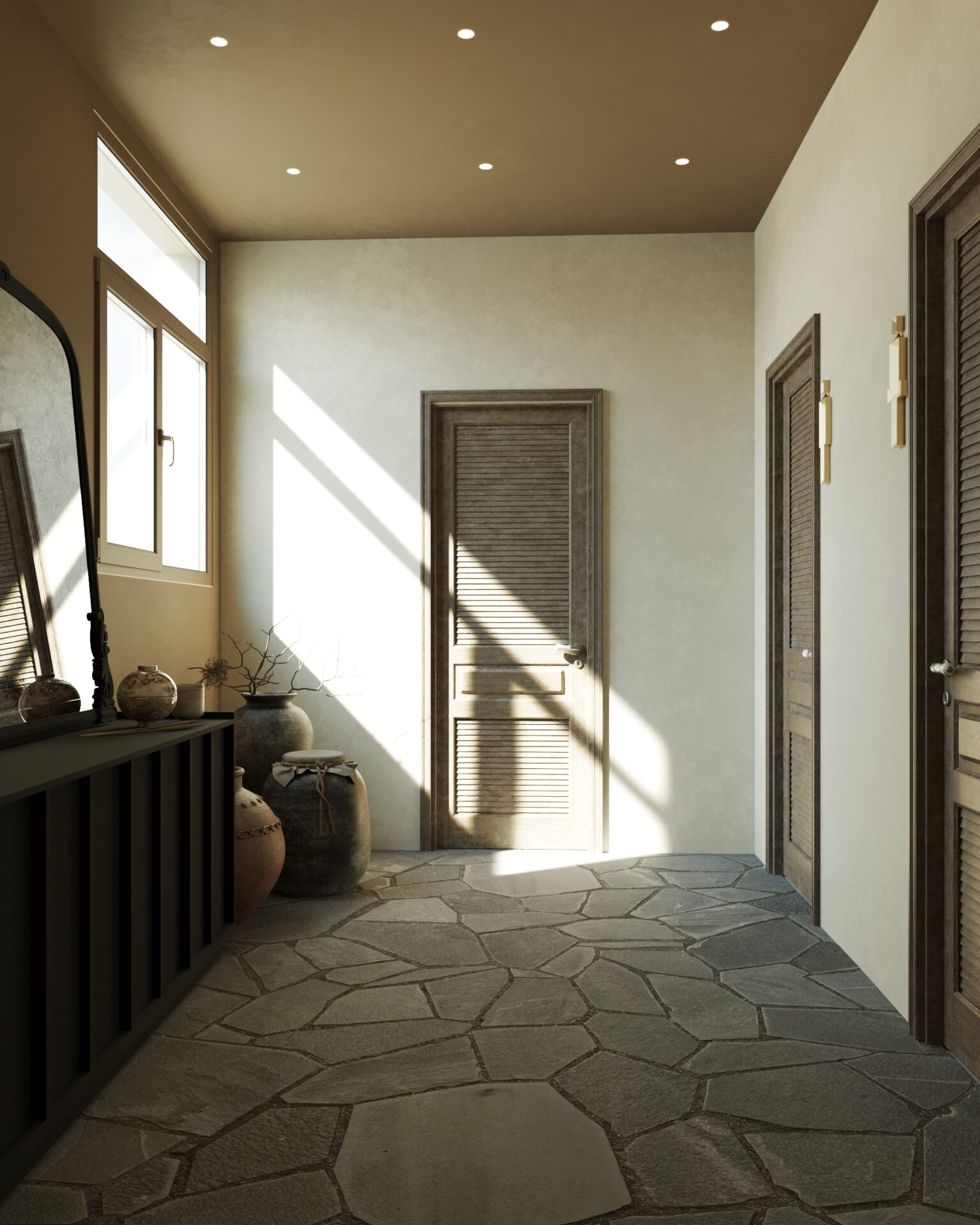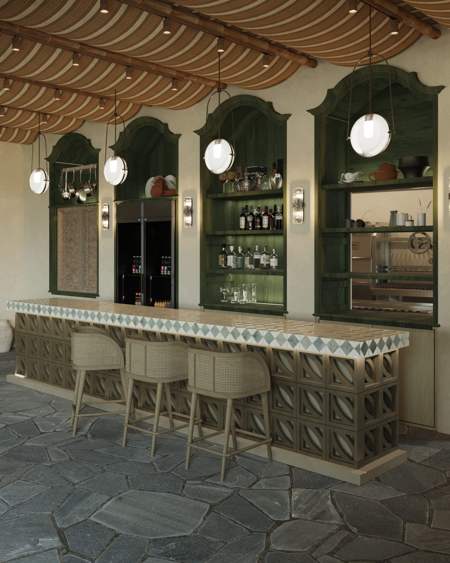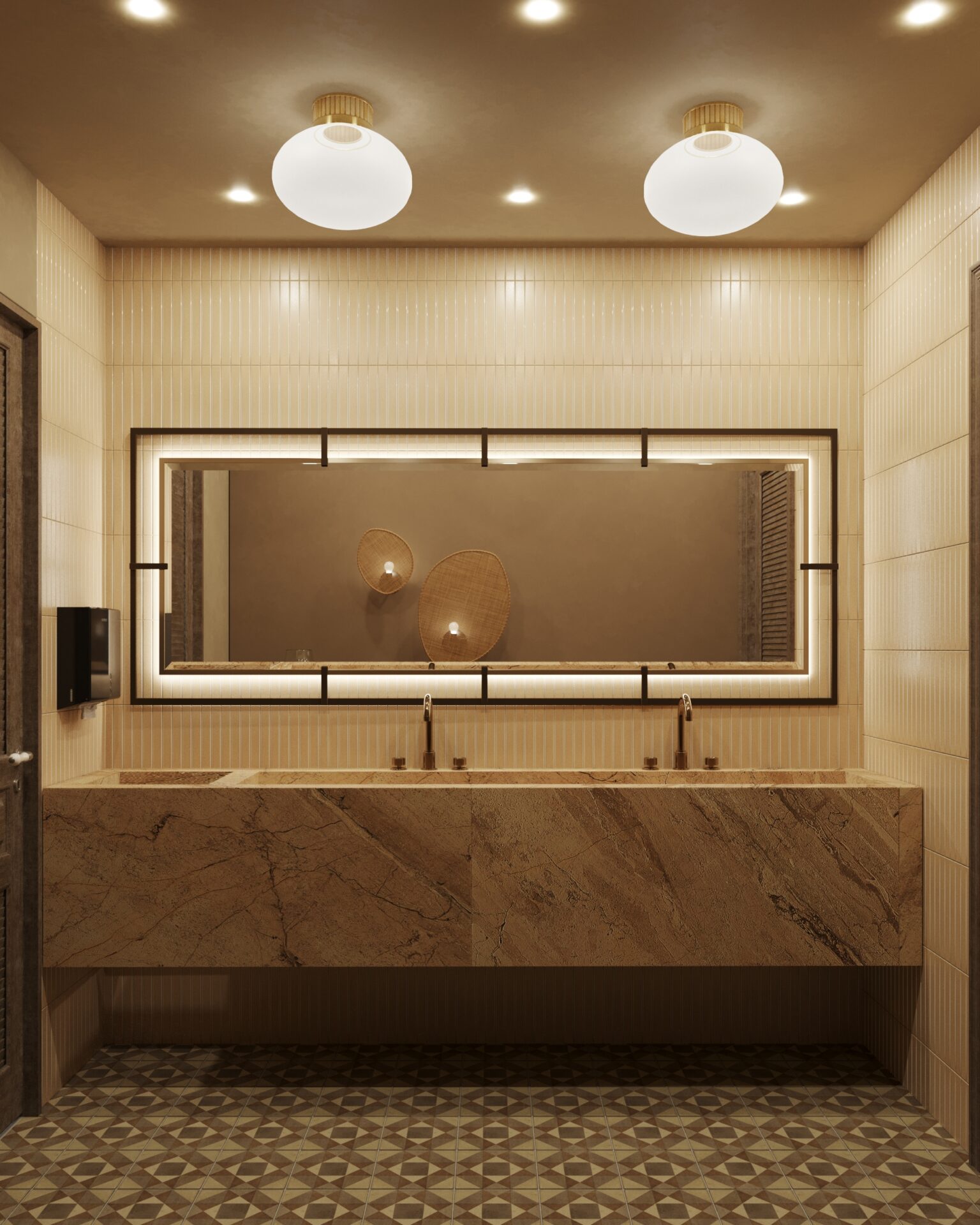 Τα φυσικά υλικά θέτουν τον τόνο — η υφή της πέτρας κάτω από τα πόδια αντιπαραβάλλεται όμορφα με τις λείες ξύλινες οροφές και τις χειροποίητες λεπτομέρειες. Η γήινη παλέτα του εσωτερικού, ο διακριτικός φωτισμός και οι απτικές επιφάνειες δημιουργούν αίσθηση ηρεμίας και διακριτικής κομψότητας. Κάθε γωνιά φαίνεται μελετημένη, προσκαλώντας τους επισκέπτες να αργήσουν και να συνδεθούν γύρω από φαγητό που γιορτάζει τόσο την παράδοση όσο και τη δημιουργικότητα.